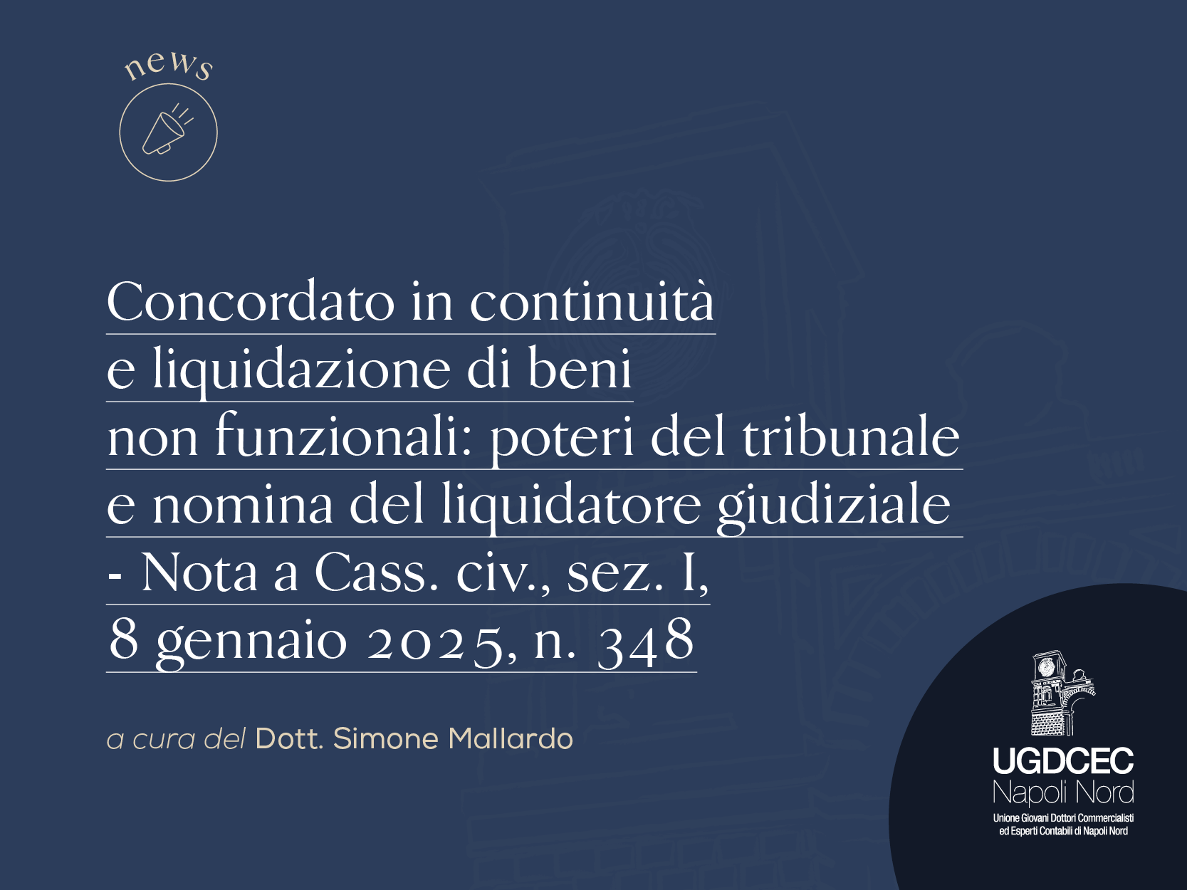 Concordato in continuità e liquidazione di beni non funzionali: poteri del tribunale e nomina del liquidatore giudiziale – Nota a Cass. civ., sez. I, 8 gennaio 2025, n. 348