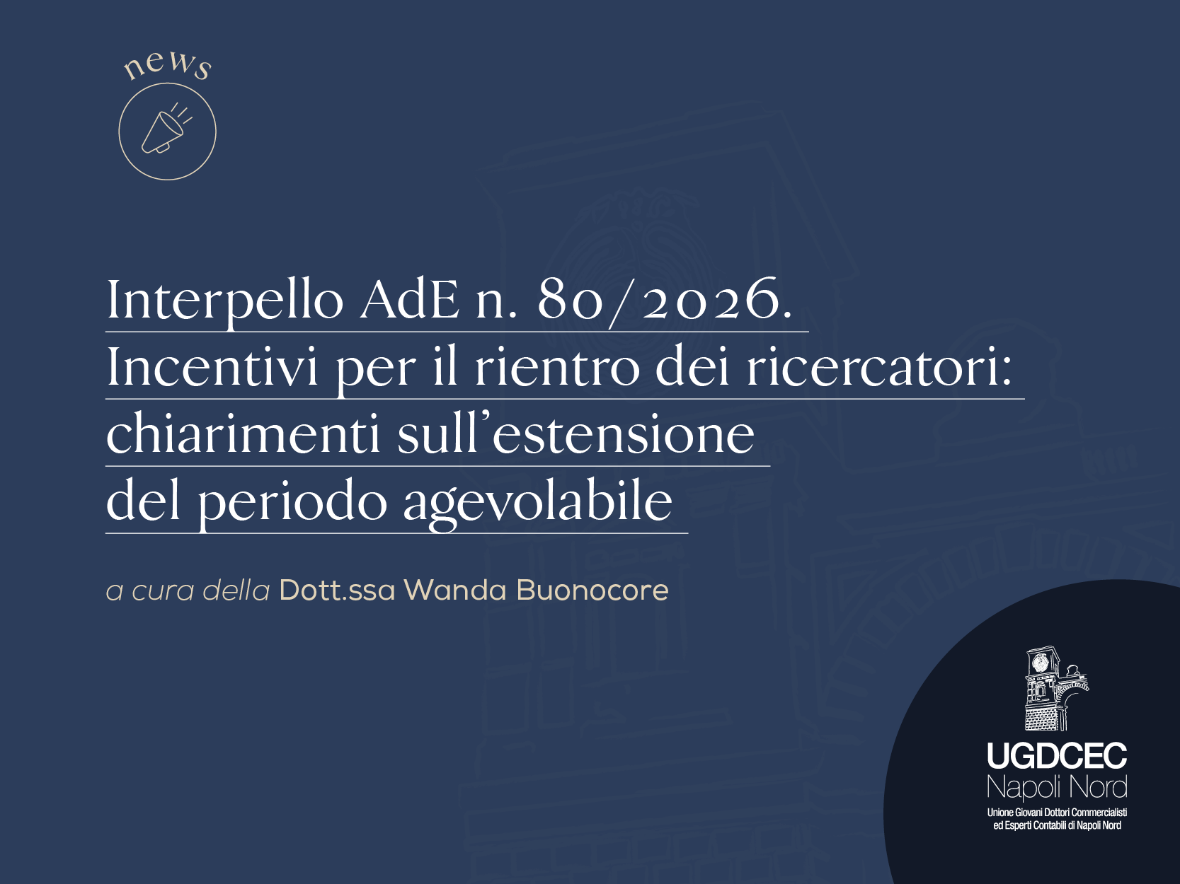Con la risposta a interpello n. 80/2026, l’Agenzia delle Entrate ha fornito un chiarimento rilevante in merito alla possibilità di estendere nel tempo il regime agevolativo previsto dall’articolo 44 del D.L. n. 78/2010, applicabile ai docenti e ricercatori che trasferiscono la residenza fiscale in Italia.
